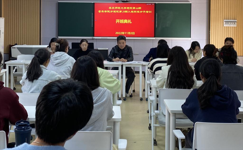 11月2日,学院第66期入党积极分子培训班开班典礼在艺术楼智慧教室举行。学院党委书记张铭、党委副书记肖之进、各学生党支部书记、辅导员参加了此次开班典礼。