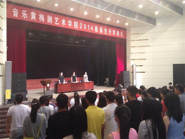 9月26日下午,音乐黄梅剧艺术学院2014级新生开学典礼暨入学教育大会在音乐厅隆重举行。我院党总支书记刘燕、副院长刘蕊等领导出席了会议、教师代表杨飞虎老师、全体辅导员以及老生代表和2014级全体新生参加了典礼。典礼由我院党总支副书记陈银凤主持。