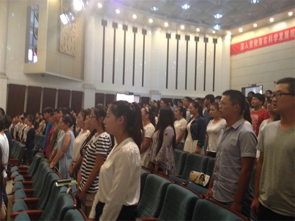 刘燕书记代表院党政班子和全体教职工对2014级新同学表示热烈祝贺与欢迎,她结合个人的大学成长经历,情真意切、饱含深情地向广大新生阐述了大学的内涵,勉励广大新生要从接受和尊重自己的选择、珍惜当下的时光开始,尽快适应新环境,脚踏实地,努力进取,不断实现自我超越,并对同学们提出了殷切期望:一要学求真,即坚持信仰,追求真知,学做真人;二要学向善,即明理知耻、行忠恕之道;三要立美,不断涵养美的情操、美的品格与美的素养。