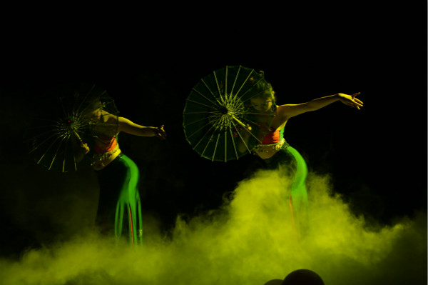学生们各有所长,有的擅长古典舞,有的擅长民族舞,有的擅长现代舞。《六月清河》、《采薇》是两个极具代表性的古典舞,舞蹈表演专业的女生们用婀娜的舞姿和生动的表情打动了在场的每一个观众。长袖挥舞、蒲扇轻摇、油纸伞旋转,演员们好像置身于江南烟雨中,人与舞台融为一体。台下掌声此起彼伏。