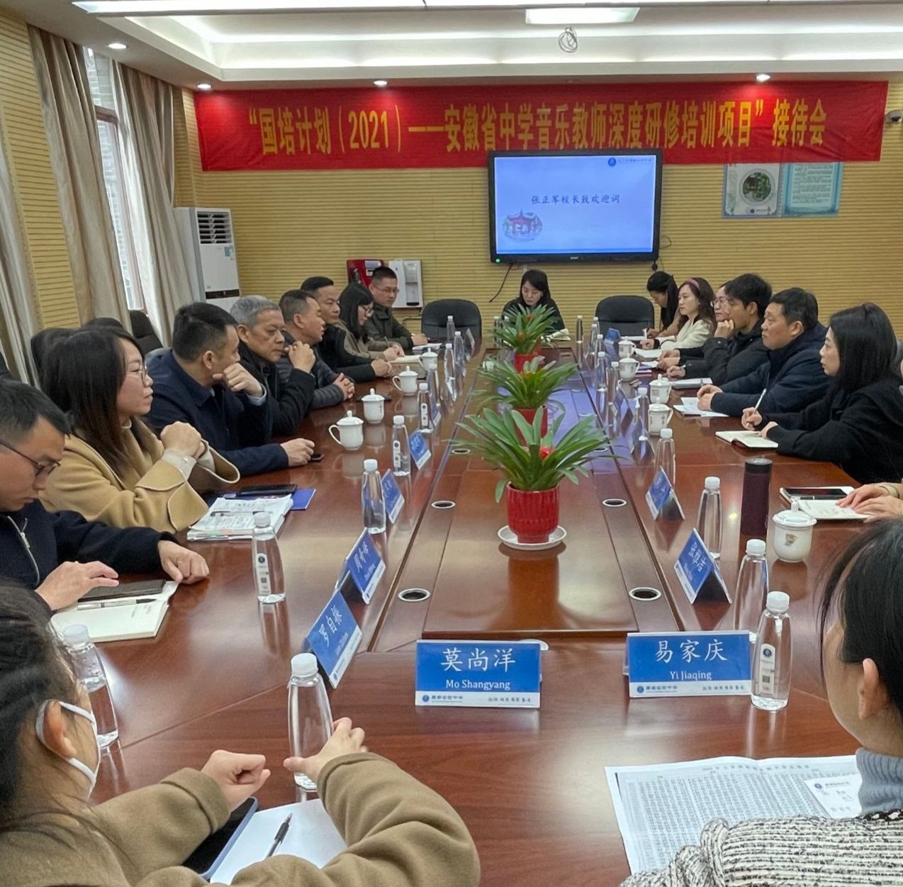 3月19日,由我院承办的“国培计划(2021)”安徽省体育音乐美术等薄弱学科教师深度研修(中小学音乐)项目第三年度跟岗研修分别在湖南师范大学附属小学、长沙市周南实验中学正式开班。湖南师范大学美育发展与研究中心主任吴修林教授与胡碧鱼博士出席会议。跟岗研修学校领导、承训单位领导、项目组成员、实践指导老师、全体学员参加开班仪式。