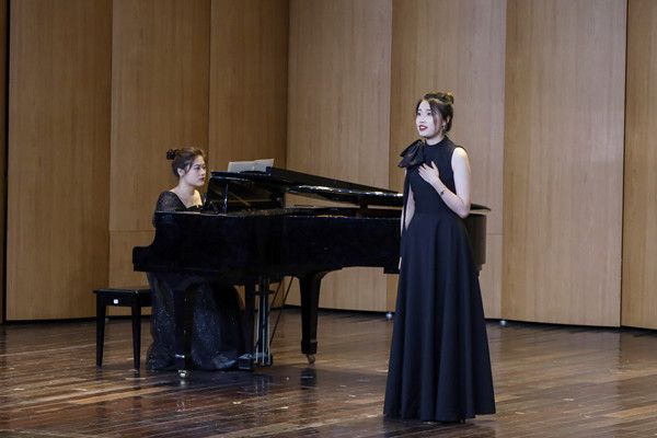 中外艺术歌曲,民歌,歌剧选段,革命歌曲,创做歌曲等“汇聚一堂”,不同艺术风格次第呈现。学生们在舞台上倾情演唱,展示平日所学;观众们在舞台下静静聆听,享受听觉“盛宴”。与往届不同的是,本次演出首次采用打分评奖制,由声乐教研室全体教师担任评委,综合参与演出选手的表现进行评分,对获奖选手颁发证书和奖品。