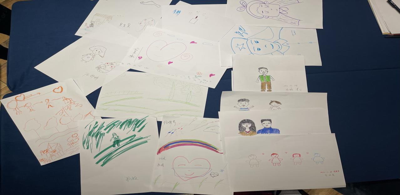 严老师首先让学员们聆听了几首歌曲,并让大家在歌曲播放的过程中以自身当下的感受,用彩笔在纸上把自己脑海里浮现的人或场景画出来。歌曲结束后,学员们都各自画了不同的人物或场景,严老师请学员们派代表分享自己的画。根据学员们的画以及各自的分享可以得出音乐可以给人营造出不同的氛围,人们可以在音乐中治愈、自愈、共育的结论。这样的过程也给在场的学员一种新的教学方式的启发。