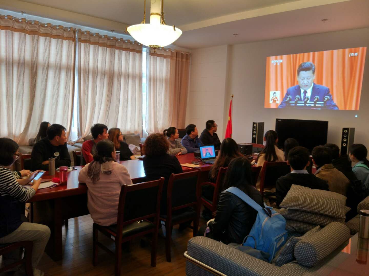 10月18日上午,学院党总支成员、教师党员、学生党员以及近期发展对象集中收看了党的十九次全国代表大会开幕会盛况,认真聆听了习近平总书记代表第十八届中央委员会在大会上作的报告。