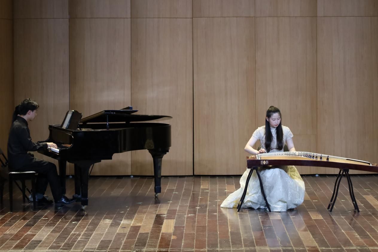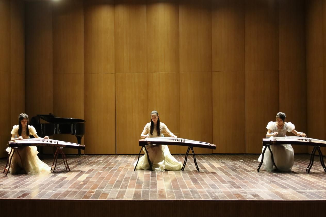 音乐会在《彝族舞曲》抒情优美的旋律和粗犷强烈的节奏中拉开帷幕。此曲根据云南彝族民间音调编写,具有鲜明的民族特点和浓郁的时代气息。节目演奏者、音乐学专业2020(4)班的马珺洁说:“这首曲子能够带领听众亲临彝族人民颇具特色的日常‘碎片’,感受他们轻松欢乐的生活氛围。”她表示,在上大学之前,父母采取的是“弹不好就罚”的严厉要求,一度对古筝学习失去兴趣,但在丁洁老师的悉心关怀和专业指导下,她重拾了学习和表演的信心,逐渐发现了古筝演奏的巨大魅力。