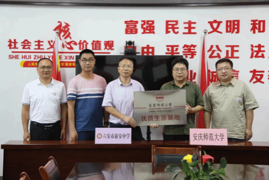 徐冉一行与各学校领导、老师和学生开展座谈,介绍我校办学历史和特色、专业优势、招生计划等方面的情况,并与六安市毛坦厂中学、新安中学分别签订了《伟德victor1946优质生源基地合作协议书》,进行了挂牌仪式。