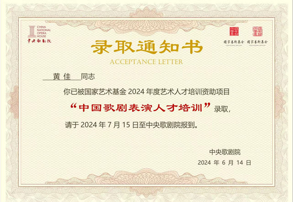 我院声乐专业博士黄佳,于2024年7月,参加了国家艺术基金重点资助项目“中国歌剧表演人才培训”。