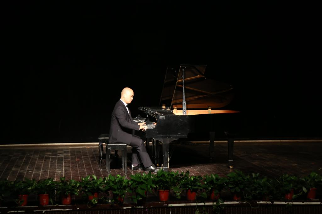 音乐缓缓响起,光束追随着演奏者,照在黑白键上,指尖不停地跳动着,一首欢快的《#C大调前奏曲与赋格》演奏结束,拉开了钢琴独奏音乐会的序幕。9月25日晚上,在校音乐厅举办了“不忘初心,牢记使命”庆祝改革开放四十周年许霖琳、杨飞虎钢琴独奏音乐会,院党总支书记李新建、副院长陈银凤和副书记肖之进出席,300多名师生共同享受了视听盛宴。