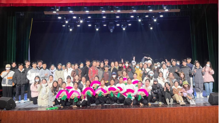 期间,宁小双教授向在座学生演示了花鼓灯表演中一些基本动作,如踏步、虎口夹扇、两指捏扇等。见台下学生跃跃欲试,宁小双教授便现场进行花鼓灯组合教学,来自舞蹈表演专业2022、2021级共30名学生上台参与。在宁小双教授的指导下,学生们身体灵活,步伐轻盈有力,流畅地跟完了伴奏。“看到大家学的那么认真,我感到很欣慰,花鼓灯是我国的传统民间舞蹈,在专业课程学习中,学生们在了解其他文化舞种的同时,也更应该学习了解并发展我们自己的传统文化。”宁小双教授说道。通过让学生上台进行展示动作、亲身体验,以加强对花鼓灯体态的认识,增加了趣味性、生动性和实践性。同学们都非常珍惜这次宝贵的学习机会,认真聆听学习课程,并积极互动。