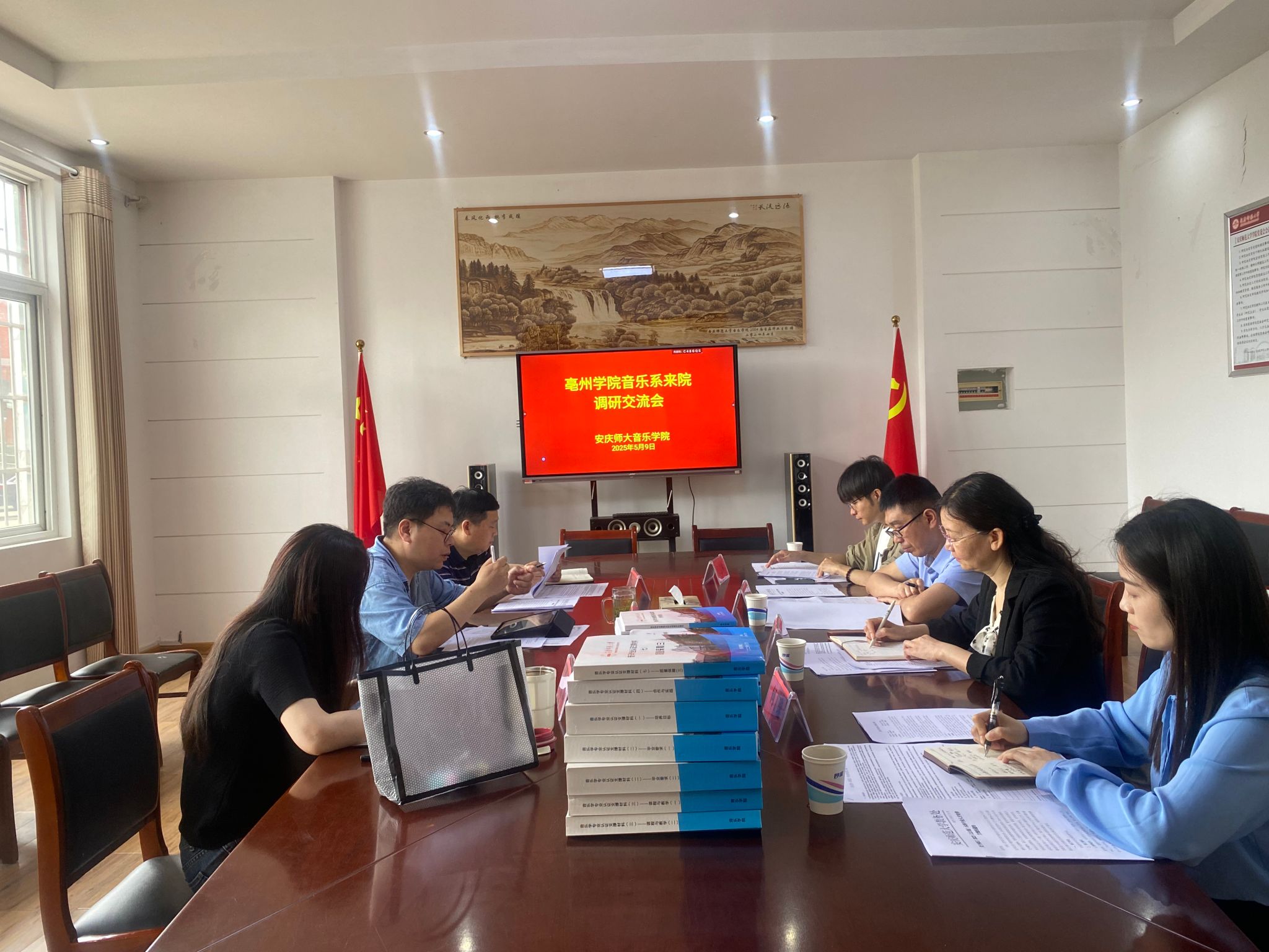 在座谈会上,我院领导详细介绍了学院办学特色,重点分享了学科建设、师资培养、黄梅戏文化传承创新、民族音乐研究等领域的成果经验,展示了“以特色促发展、以实践育人才”的办学理念。亳州学院音乐系同仁对学院的热情接待表示感谢,并围绕专业建设、课程改革、艺术实践等议题展开深入探讨。双方一致认为,在应用型人才培养、横向课题合作、地域文化研究等方面具有广阔的合作空间。