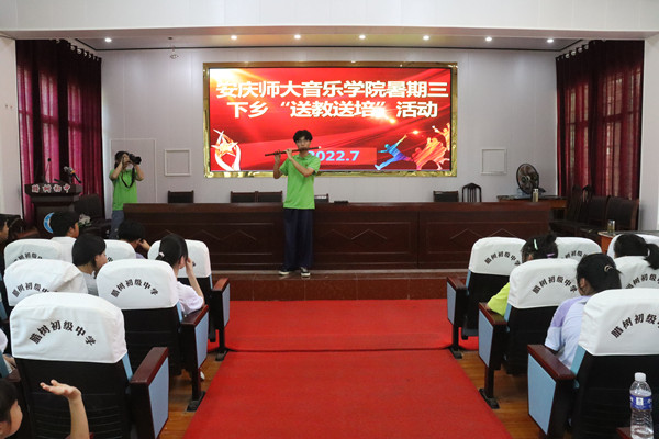 7月11日,我院“音为爱”教育关爱暑期实践团前往安庆市怀宁县腊树初级中学开展实践活动,将音乐舞蹈送到该校留守儿童的课堂上,带去丰富艺术实践内容。开课前,在腊树初级中学召开了活动开班见面会,该校校长史志学一行六人,及团队指导教师、我院团委副书记汪茗燕出席会议,10名实践团成员参加了本次会议。