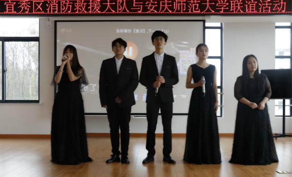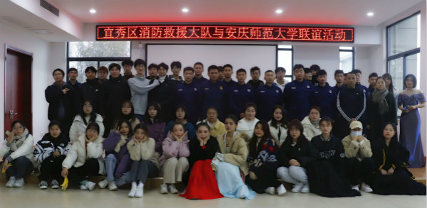 12月6日,我院与美术学院学生在院团委副书记汪茗燕老师的带领下,来到了安庆市宜秀区消防救援大队执勤楼,开展思想政治教育基地建设活动,活动分为三部分:一是警民同台演出,二是消防知识学习,三是参观消防设施。演出现场气氛热烈,消防知识学习受益匪浅。