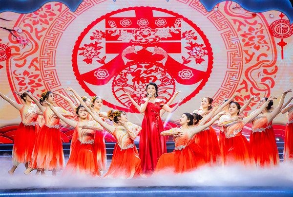 多样的民族乐器、红手绢、古典舞服……伴着《金蛇狂舞》的背景音乐,演员们手持花扇和灯笼欢喜入场,东北秧歌的手绢花随着鼓点转动,传统民俗元素的道具为表演锦上添花。参与开场舞《春开幸福门》的学生说:“从细微处的配饰到传统舞蹈表演形式,都展现了我们对优秀文化的传承,发扬了文化自信的精神风貌。”她坦言,彩排时,指导老师格外强调面部表情中情感的传达以及与观众产生的互动感。