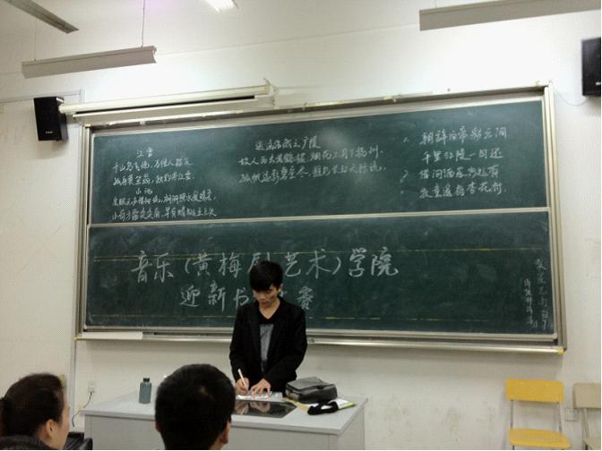 为了发扬书法精神,展现书法魅力,丰富同学们的课余文化生活,我院学生会宣传部于2012年11月7日晚6点30举办了一场“迎新书法大赛”。本次比赛共分为硬笔、软笔两种赛制,由我院书法爱好者参赛,评委为学生会主席史珂、生卫部部长邓冰清、宣传部部长黄子开等各部部长,比赛由部长们综合评定选出最终胜利者。