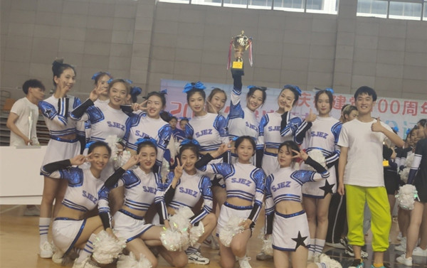“刚开始我们遇到了很多困难,最让我印象深刻的就是复杂动作与队形变换调度上的问题,由于大家的基础不同,所以导致对动作的理解程度产生偏差。”啦啦操代表队领队舞蹈表演专业2020级的张佳郡表示为了解决这一难题,成员们一遍遍的重复高难度动作,寻找视频教程对比参照,最终在赛场上呈现出了大家都满意的结果。