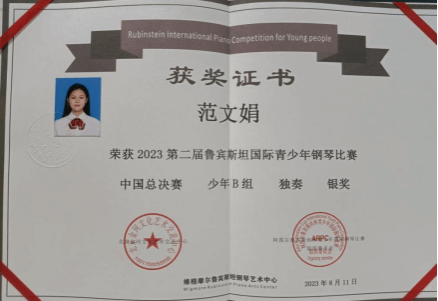 8月11日由德国音乐理事会主办的2023鲁宾斯坦国际青少年钢琴比赛在北京落下帷幕。伟德国际victor19462021级本科生范文娟所演奏的《皮黄》荣获少年B组独奏银奖。