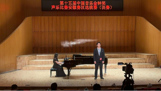 近日,由安徽省音乐家协会主办的第十五届中国音乐金钟奖声乐比赛安徽赛区选拔赛,在安徽艺术学院音乐厅如期进行。由我院声乐教研室张剑雨老师指导的2021级音乐学专业学生张坤,通过初赛、复赛的严格筛选,得到了评委的一致认可,顺利进入美声组决赛,并以9.756分的成绩,位列第九名,获得优秀奖,声乐教研室杨卓老师担任此次比赛的艺术指导。