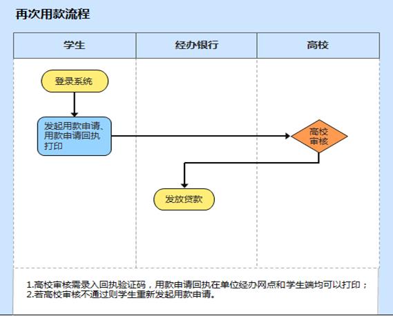 但从2017年起,首次办理贷款申请且新的贷款合同有明确约定,同一学历阶段需要再次用款的,可以直接通过系统申请,不需要再到经办银行现场办理。