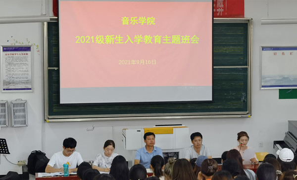 9月16日下午,我院在艺术楼B107教室举行2021级新生入学教育主题班会,院党委副书记肖之进、辅导员王任赵、汪茗燕、孙文,班主任童昕,以及全体新生参加。