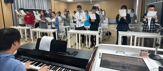 在学院艺术楼教室,肖之进、高艳及3位校友老师汪茗燕、张剑雨、李宗旺,带领下与会学生学唱了伟德victor1946校歌。“红楼育学子,百年话沧桑。群星辉映着北斗,桃李长成了栋梁,为国为民担道义,学高身正作榜样......”歌词振奋人心,旋律催人奋进。同学们共同唱响校歌,激情满怀,青春飞扬。校歌把师生对学校的热爱、对理想的追求都融入到了动听的校歌声中,唱出了激情,唱出了力量,唱出了团结,唱出了校园最动听的声音。