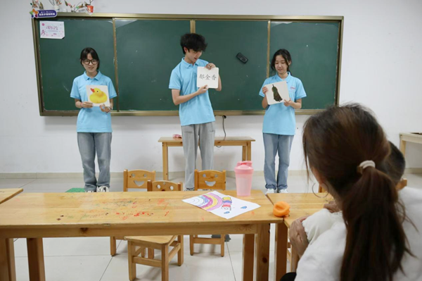 演示音乐教具、比划游戏动作、教授儿童歌曲……教室里,实践队员们化身“小老师”,承担起日常教学的任务。“这是我首次接触自闭症儿童这个群体,刚来到特教学校时,我担忧自己是否能胜任特教教师的角色。”实践队员古锐坦言,“在前期的观摩与学习中,我逐渐理解对自闭症儿童的教学特点和方法。这些小朋友有着自己的精神世界,只是不善于表达自己。”