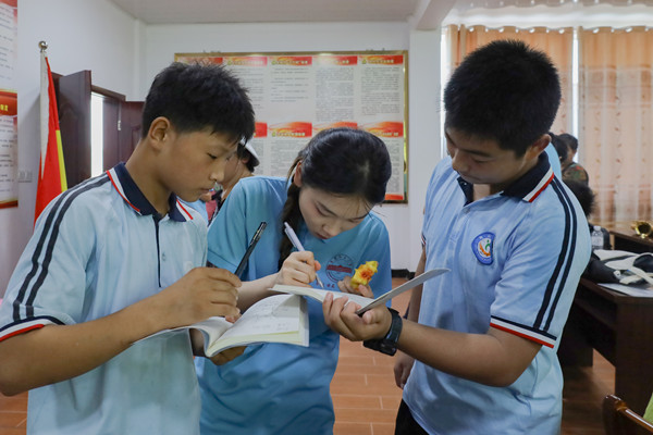 观察学生的性格特点,主动与学生进行交流,每天逐个送学生放学……支教十几天,得让学生们学到真东西,为此薛佳雅尝试用多种办法与学生建立起沟通的桥梁,走进学生心中。“老师,能不能给我看一看你们学校长什么样子?”一个小小的提问打破了长时间的沟通屏障。“我最远只到过石牌镇,再远就没有去过了。”一位在场的学生说。薛佳雅随即拿出手机,向学生们分享她的校园照片和亲身经历,并为学生们描绘大学生活,鼓励他们刻苦学习,走进大学校门。