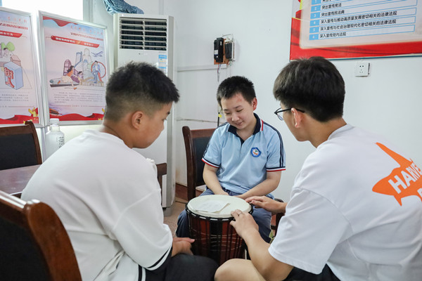 “我将陪伴了自己三年的葫芦丝赠送给了我的学生,希望这个乐器能继续激发他对音乐的兴趣与热情。”音乐学专业2022(4)班的王乐说。实践团队员们观察到,学生们感兴趣的乐器集中在葫芦丝和口吹琴,但他们平时只能借用实践队员的乐器,或者利用学校现有的乐器进行学习,课后在家练习乐器的机会很少。王乐表示,成员们发现这个情况后,当即决定购置一批乐器,送给选择相应课程的学生。