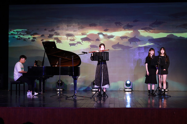 或四手联弹,或双钢琴重奏,钢琴曲《起风了》与《When I Miss You》带来悠扬的旋律;乐曲《行者》将西安鼓乐与龟兹乐元素完美地糅合在一起;清脆的竹笛声、悦耳的钢琴声、缥缈的人声将《大鱼海棠》的故事娓娓道来;萨克斯重奏《Good Boy》将全场气氛推向高潮。