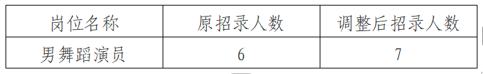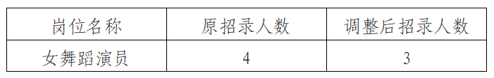 根据《合肥演艺集团有限公司2026年表演类专业技术人员校园招聘启事》规定,经网上报名、资格初审、专业水平测试等程序,并召开会议集体研究,结合实际情况对招聘岗位人数进行了调整。现将岗位调整情况公告如下: