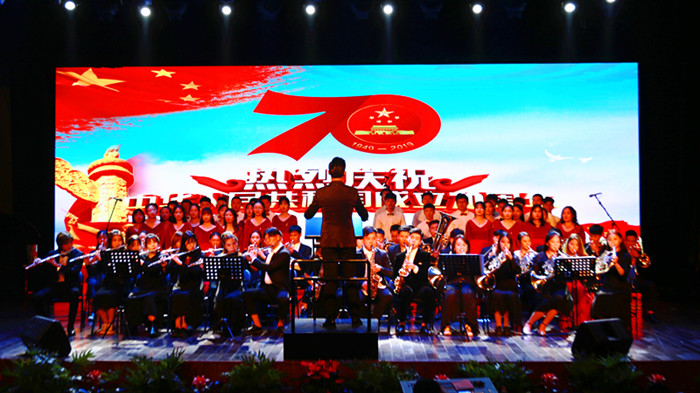 “礼赞新中国,唱响新时代;歌声献给祖国,我们都是追梦人!”9月27日晚,我院在音乐厅隆重举办“歌唱祖国”庆祝新中国成立70周年文艺晚会,140余名师生同台演出,现场气氛喜庆热烈,赞歌与情怀交织,共同抒发对祖国深切的热爱之情。学校400余名师生观看了演出。