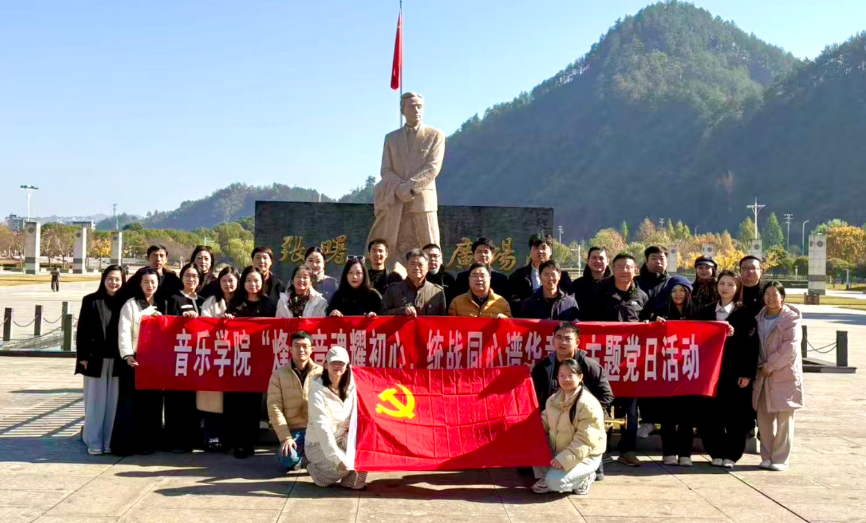 上午,全体教师齐聚歙县张曙公园音乐广场。学院党委书记张铭以一堂别开生面的现场党课《在音符中铸就民族之魂》深情开讲,带领大家回溯张曙从徽州走出、以音乐为武器投身抗战的壮烈人生。随着讲述,在场教师齐声高唱张曙代表作《日落西山》《保卫国土》,激昂旋律穿透时空,一曲曲战歌,回顾张曙的战斗生涯,感受到一个个生动的历史缩影。现场党课不仅是对先烈的追思,更是一次“党建+统战”的生动实践,在场教师纷纷表示,将以张曙等革命文艺先驱为榜样,共筑“育人共同体”,用手中的音符,去创作无愧于时代的华彩乐章;用三尺讲台,去培育担当民族复兴大任的时代新人。