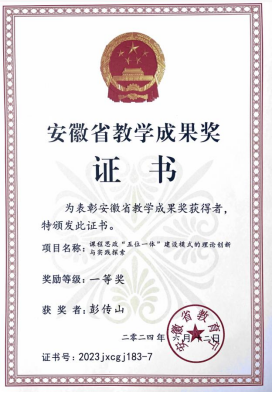 “安徽省教学成果奖”是对高校教师教学研究成果的重要表彰,作为课题组的一员,彭传山老师与徐冉老师积极参与课题进行,不断提升教学资源与质量,探索人才培养的新模式,促进了相关学科发展与探索,从学科教学、学术氛围等方面对其他青年学者具有表率作用,期望两位老师在后续课题进行中持续耕进、再创佳绩!(撰稿:孙斐然;供图:熊星子;审核:彭传山)